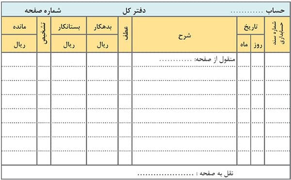 دفتر کل از ستونهای زیر تشکیل میشود:
