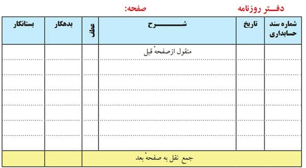 - ستون عطف: در مقابل هر یک از اقلام ذکر شده میبایست شماره صفحه دفتر روزنامه نیز ثبت شود.